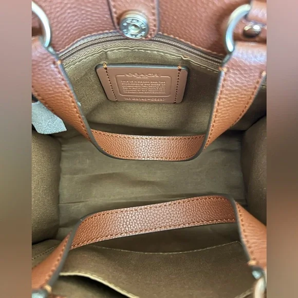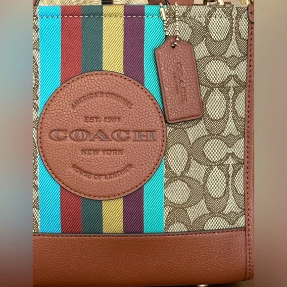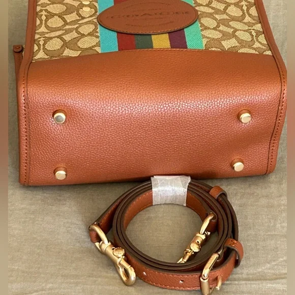 Choose Preloved♻️EUCExcellent Condition…Preloved (expect signs of aging and use, photos considered part of description)Circa 2021🌟Like New🌟Signature C Jacquard w/Legacy StripesPebble Leather in RedwoodGold Tone Hardware Magnetic Snap Closure Interior Fabric Lined•Zip & Slip Pockets43” Adjustable/Removable Strap4.25” Double Handle Drop