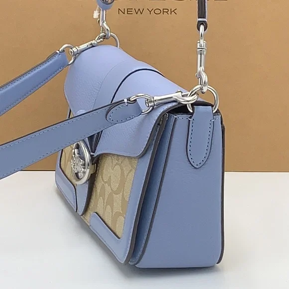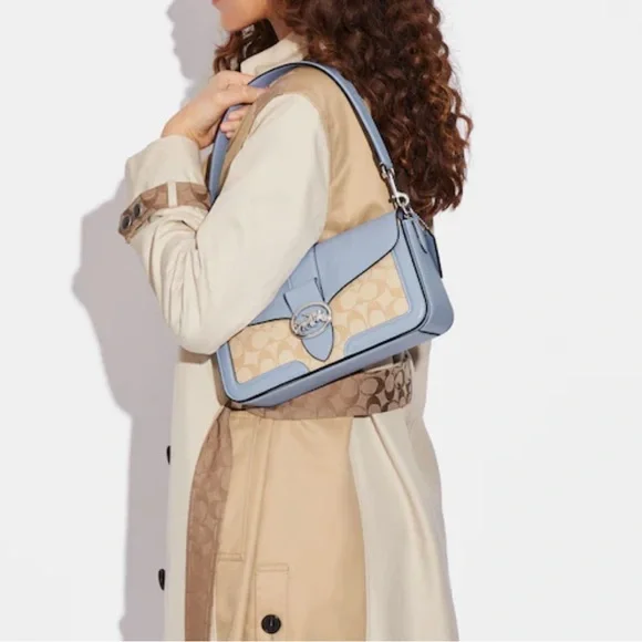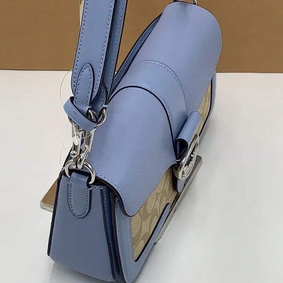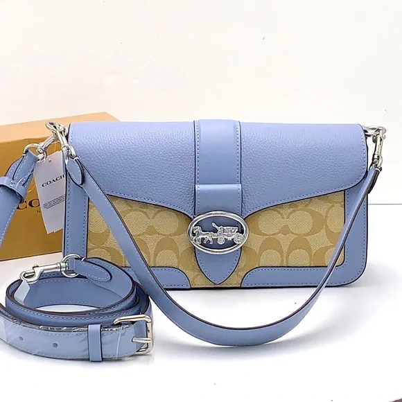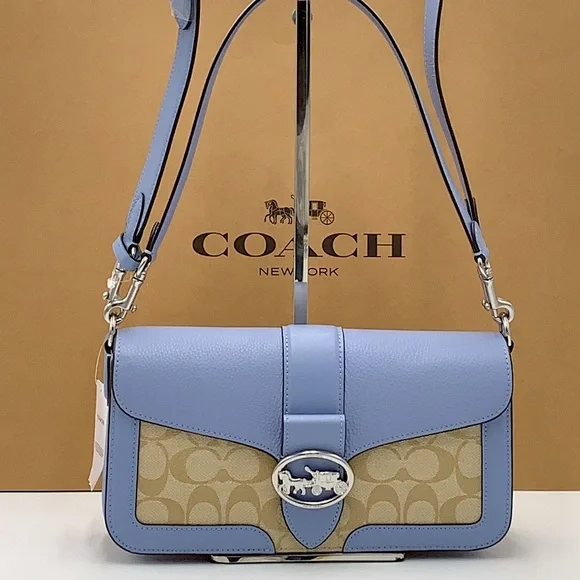 COACH Georgie Shoulder Bag In Signature Canvas Silver/Light Khaki/Marble Blue