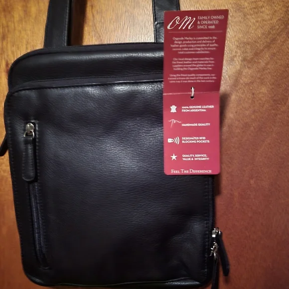 This amazing quality handmade 100% genuine leather crossbody could be yours. Itsdesignated RFID blocking pockets ensure your credit and bank cards are safe. The quality can be felt in this amazing crossbody. This also has an adjustable strap.Measurements:9" wide11" tall